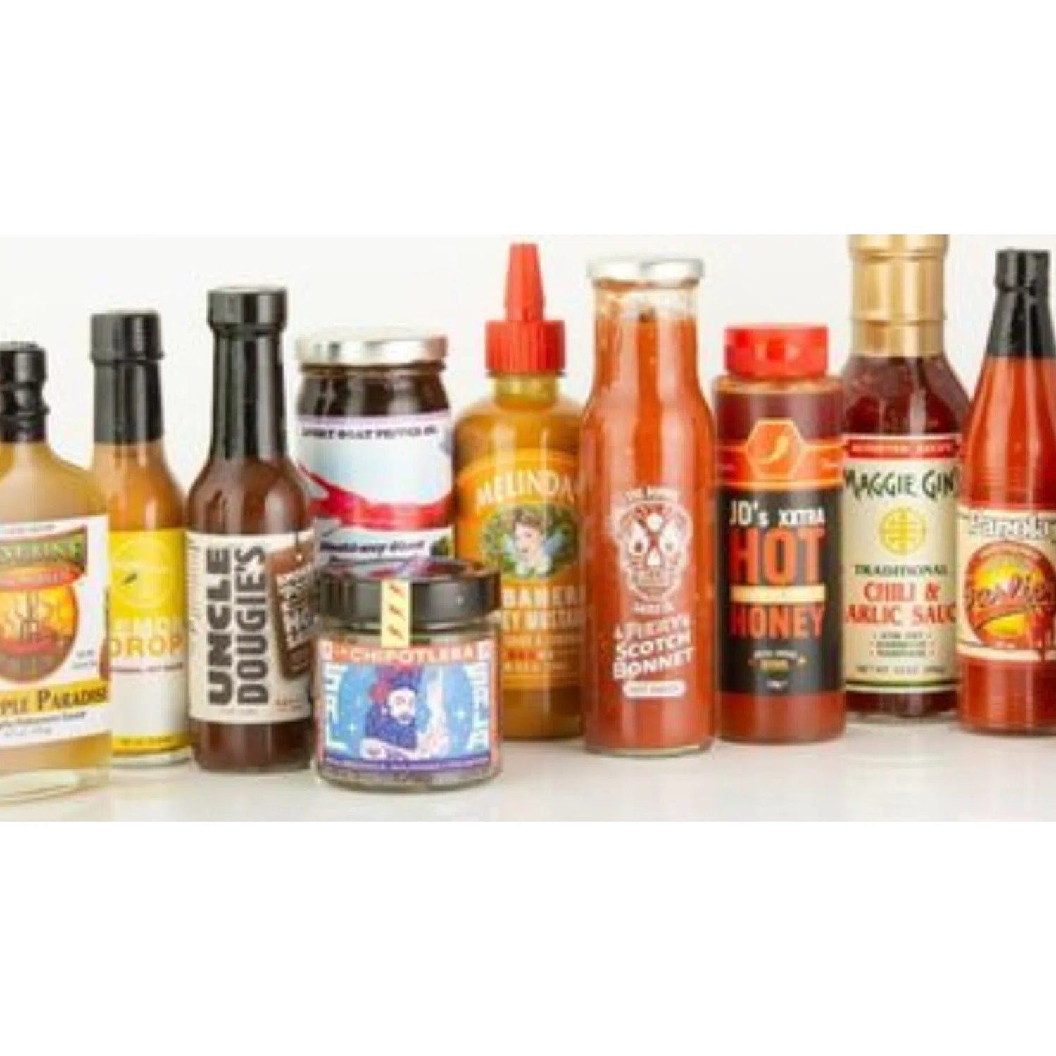 18 sauces selected by the team at Hickory's Smokehouses to represent the best in hot sauce the world has to offer. Form mild to wild these craft hot sauces are all delicious and perfect to pair with the best in BBQ food. Contents vary. Not related to picture.