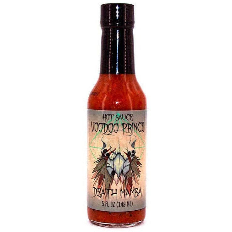 Step into the shadows of flavor with Voodoo Prince Death Mamba - a potion of dark spices and the fiery ghost pepper. This sauce isn't just for your average meals; it's for those seeking a thrill with every bite! Perfect for slathering on burgers and ribs, it adds a sinister kick that'll make your taste buds dance with delight. But heed the warning: this sauce isn't for the faint of heart. Approach with caution and prepare for an otherworldly culinary experience. Are you brave enough to embrace the Voodoo Prince?