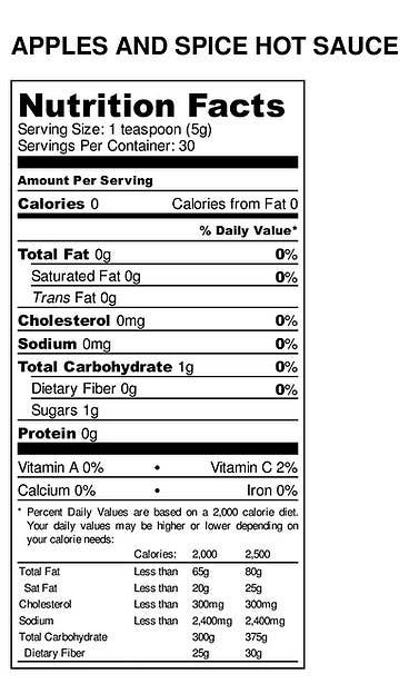 Ingredients: Apples, apple cider vinegar, water, brown sugar, yellow 7-pot primo peppers, spice, xanthan gum