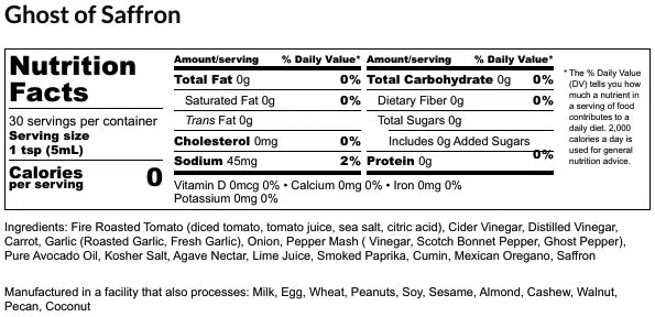 My first truly wonderful Taco was an experience I have never forgotten and this sauce is very reminiscent of that. However, the sauce is so much more than just a taco sauce. Ghost of Saffron combines all of my favorite aspects of an incredible hot sauce into one insane flavor bomb! The combination of Scotch bonnet and ghost peppers lead to a very complex and satisfying burn, while the avocado oil brings a luxurious mouthfeel to the sauce. Roasted garlic and onion combined with toasted cumin seed in just a whisper of saffron to create a sauce that I never thought could be achieved.