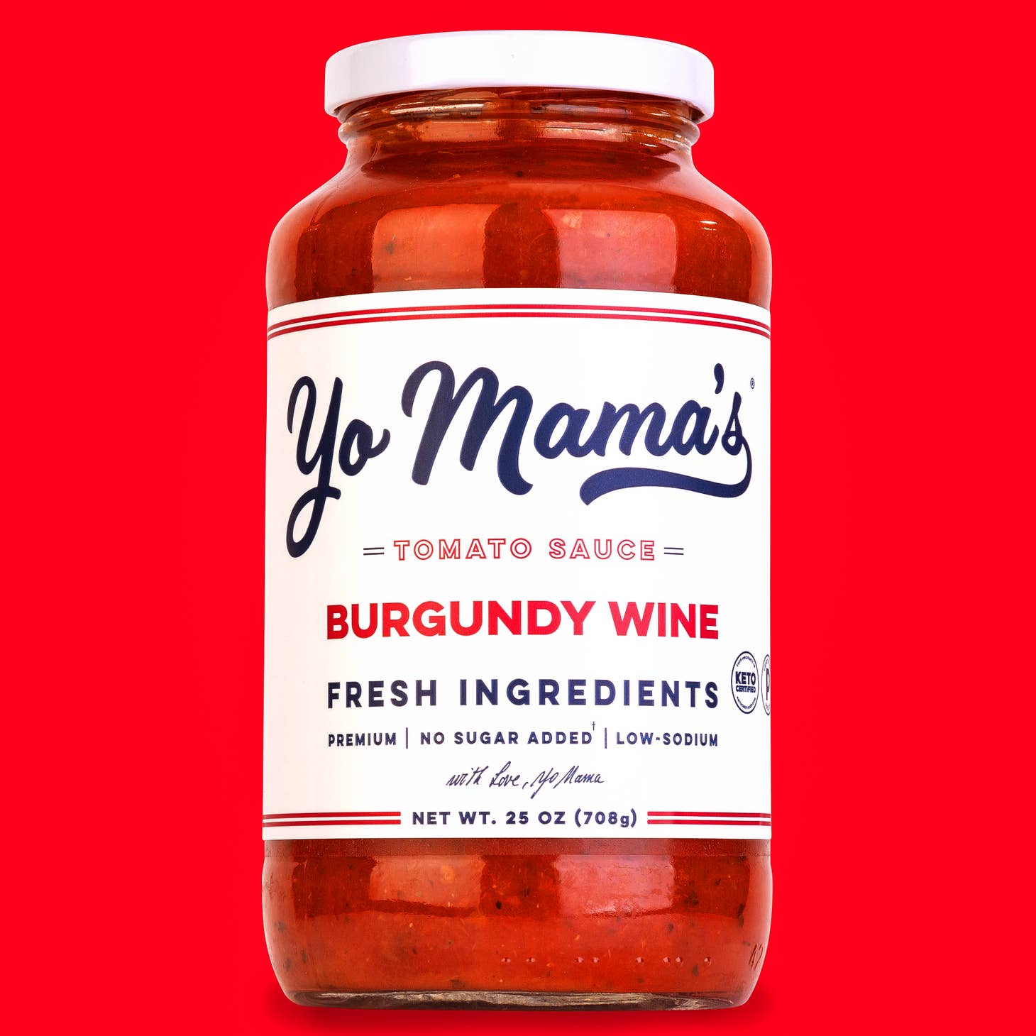 Yo Mama's Burgundy Marinara is handcrafted with imported French wine, garden fresh tomatoes, garlic, onions, olive oil, and basil. Lovingly made in small batches, out Mama-approved recipe contains no added sugar GMOs, preservatives, or gluten.