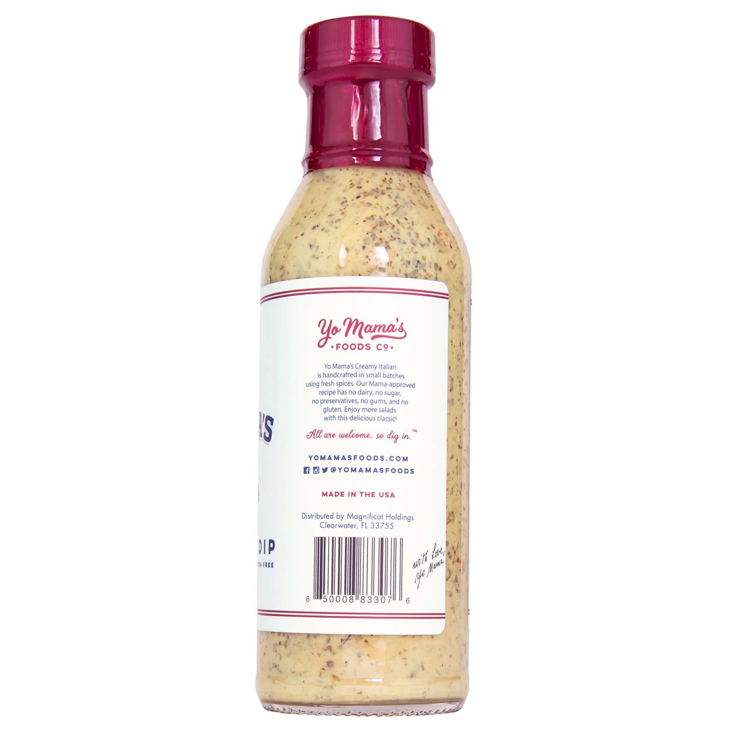Yo Mamas Creamy Italian is handmade in small batches with fresh spices. Our MAMA approved recipe contains no dairy, sugar, preservatives, gums or gluten. Enjoy more salads with this delicious classic!