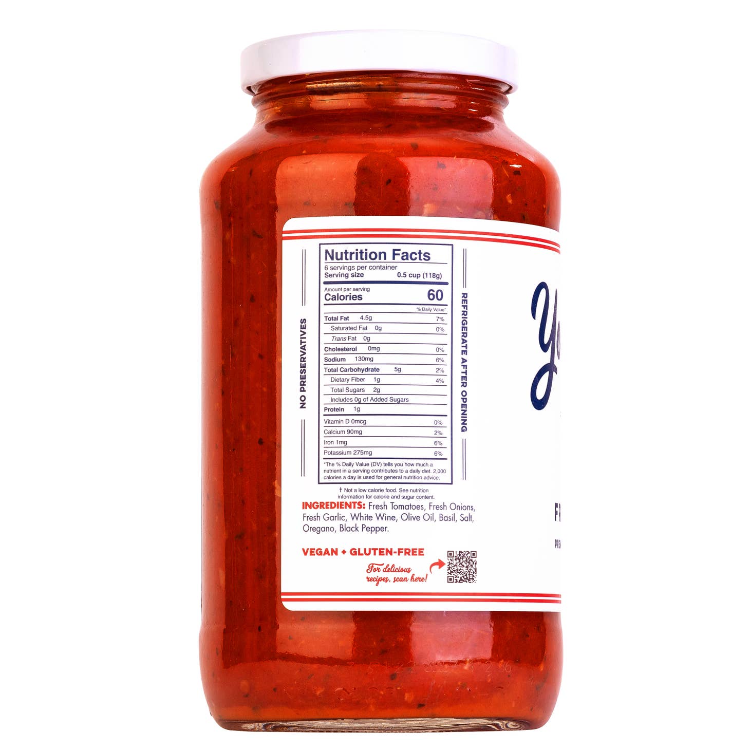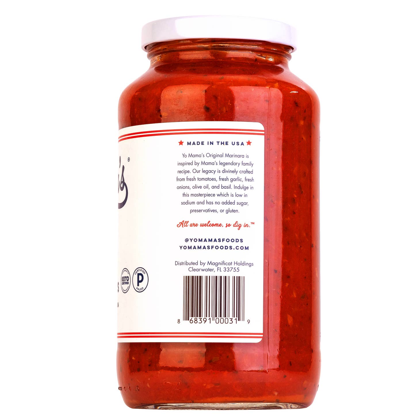 Yo Mama's Magnificent Marinara is inspired by Nonna's legendary Italian recipe. Our heritage is divinely made with fresh garden tomatoes, garlic, onions, olive oil and basil. Treat yourself to this masterpiece that contains no added sugar, GMOs, preservatives or gluten.